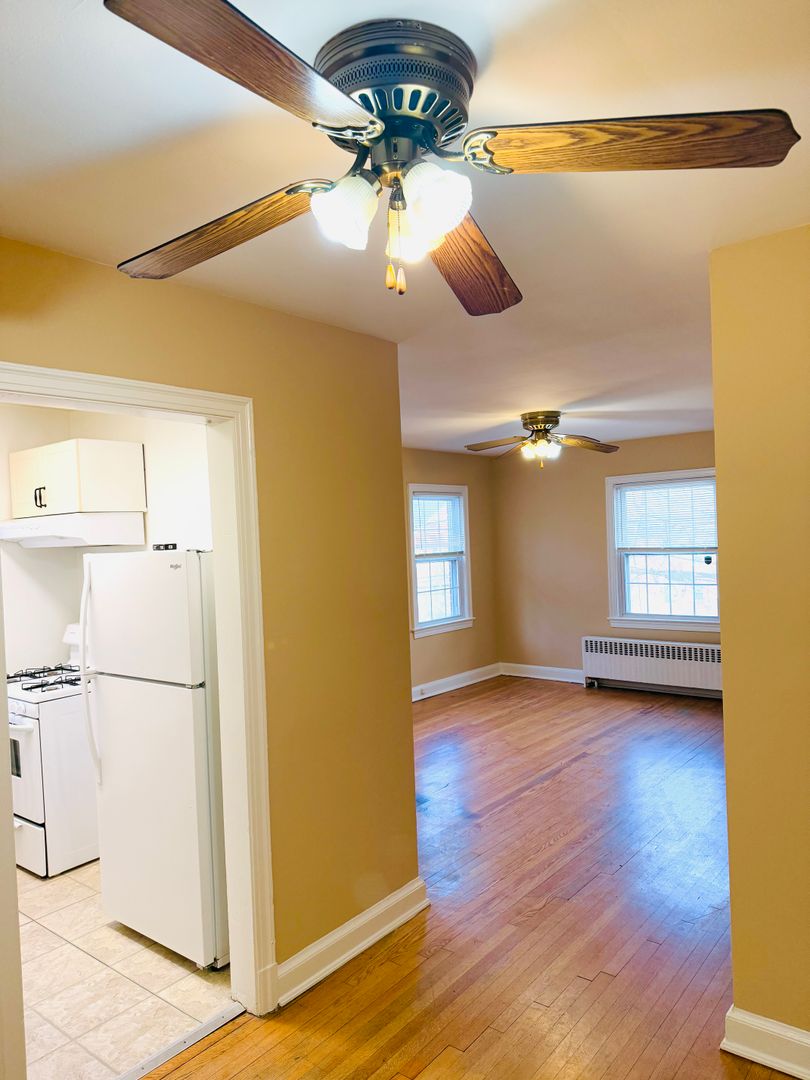 The apartment is situated on the second floor and is filled with natural light thanks to its many windows. It features beautiful hardwood floors, a spacious living room, a linen closet, and a large walk-in closet in the bedroom.
