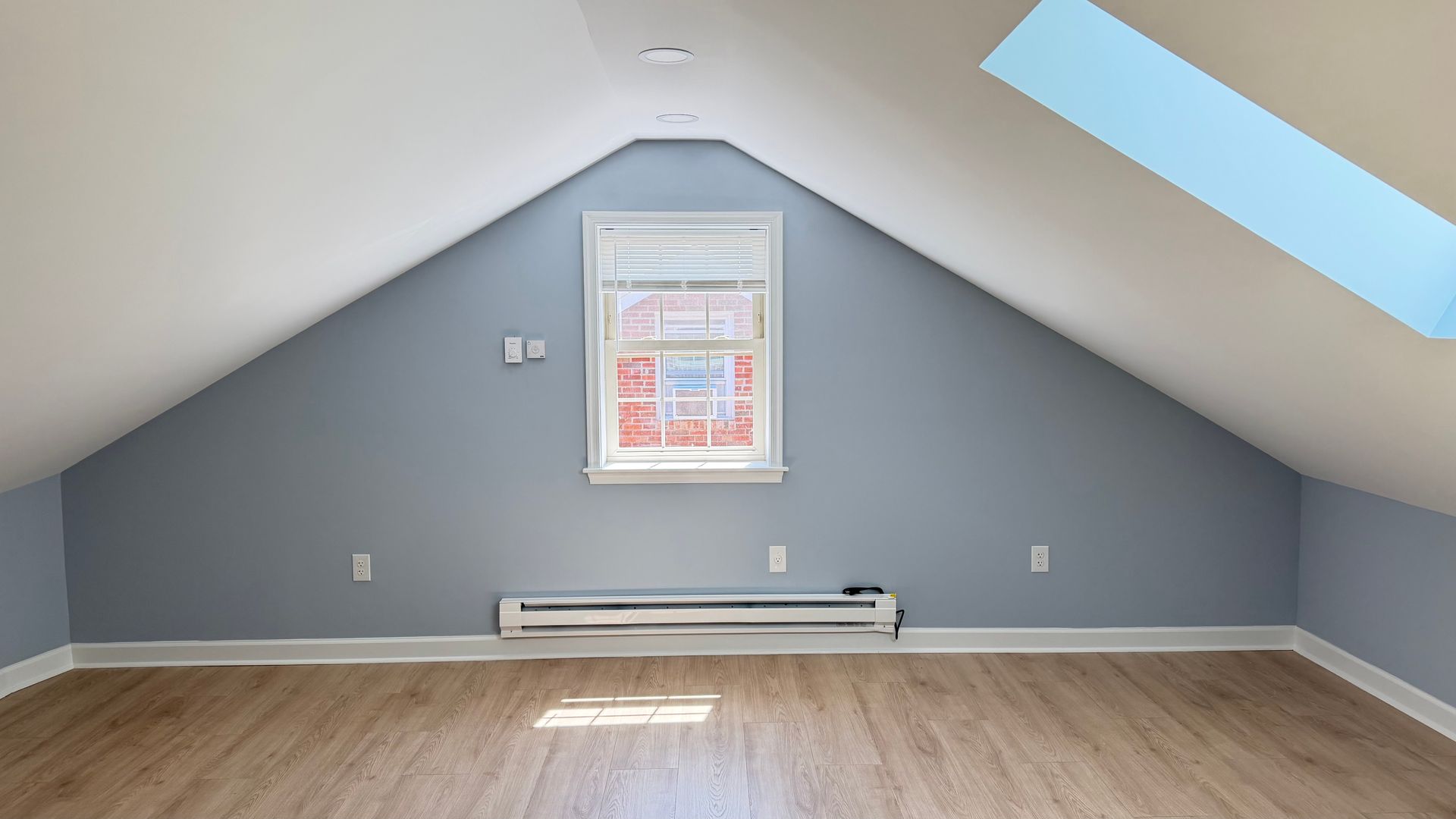 Unique two-level design with a top-level skylight