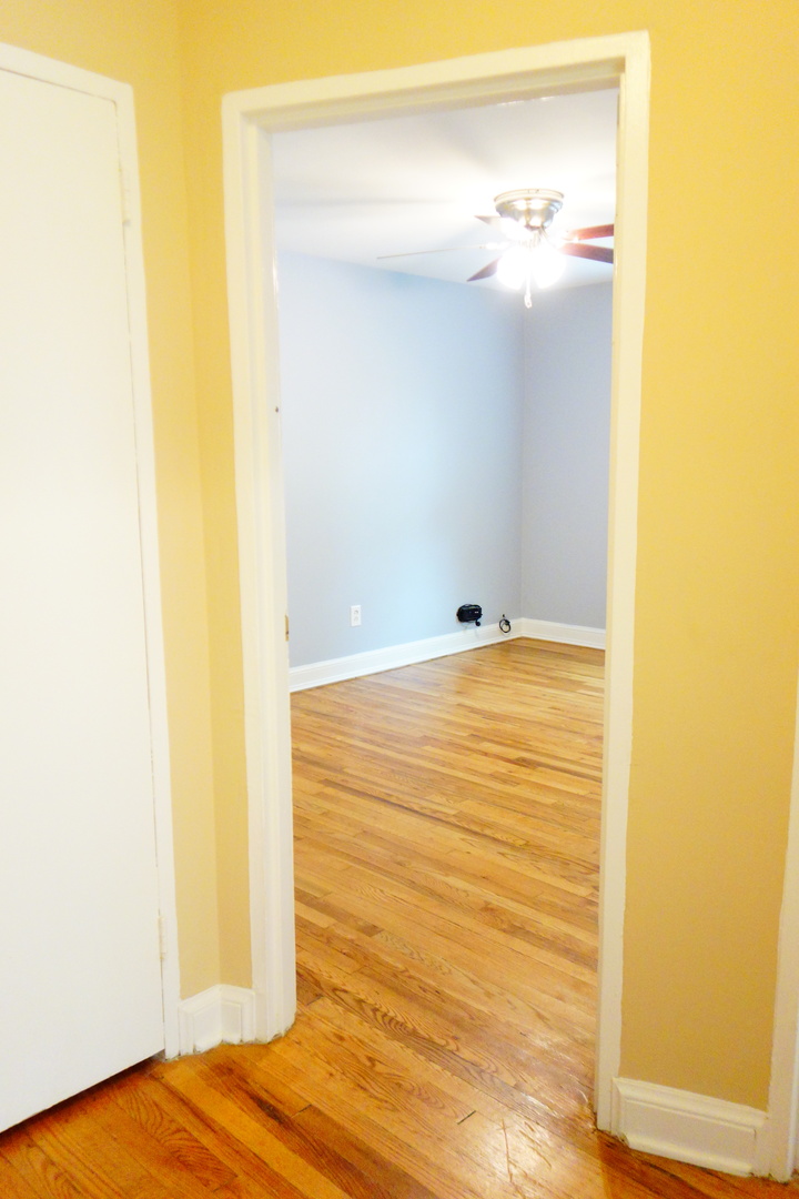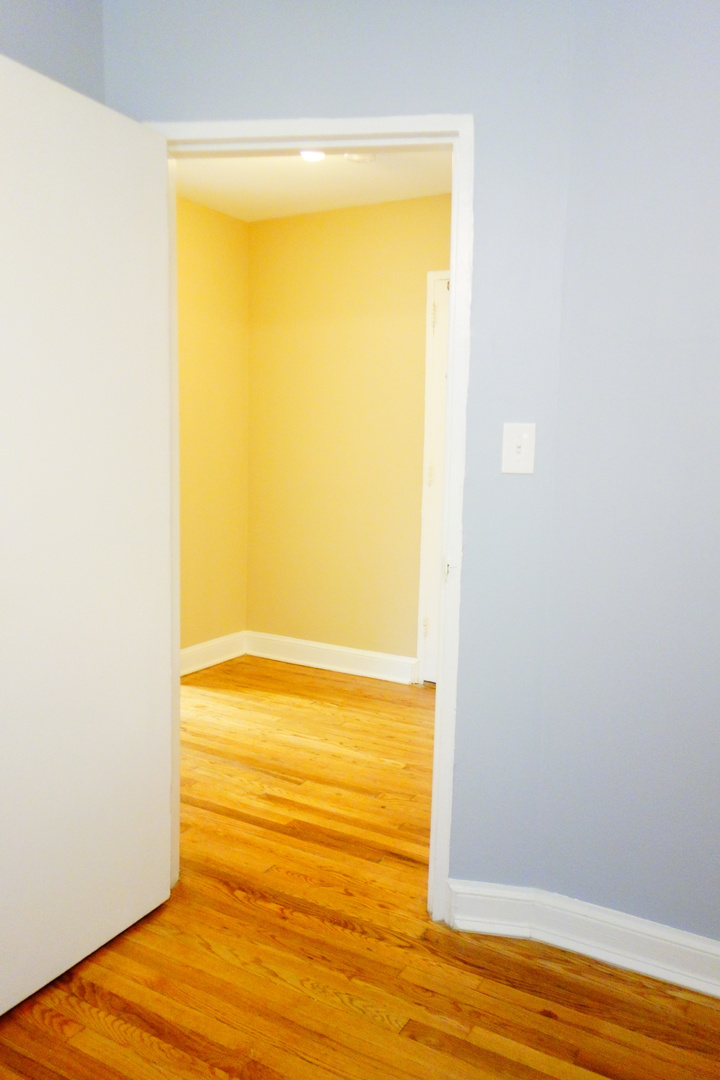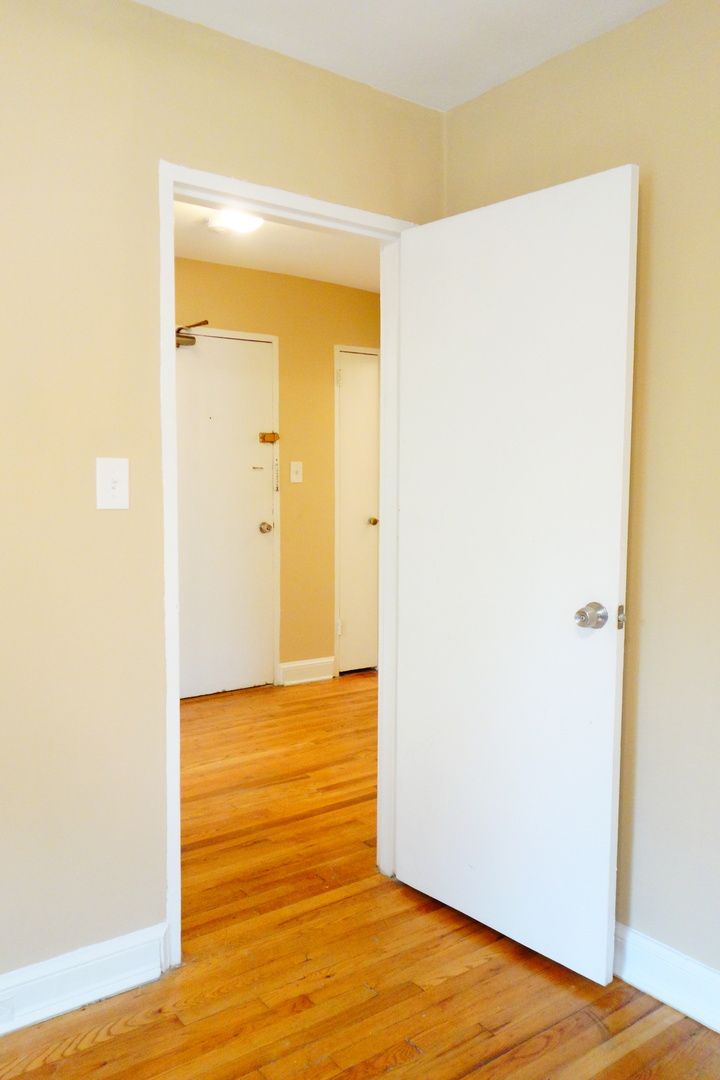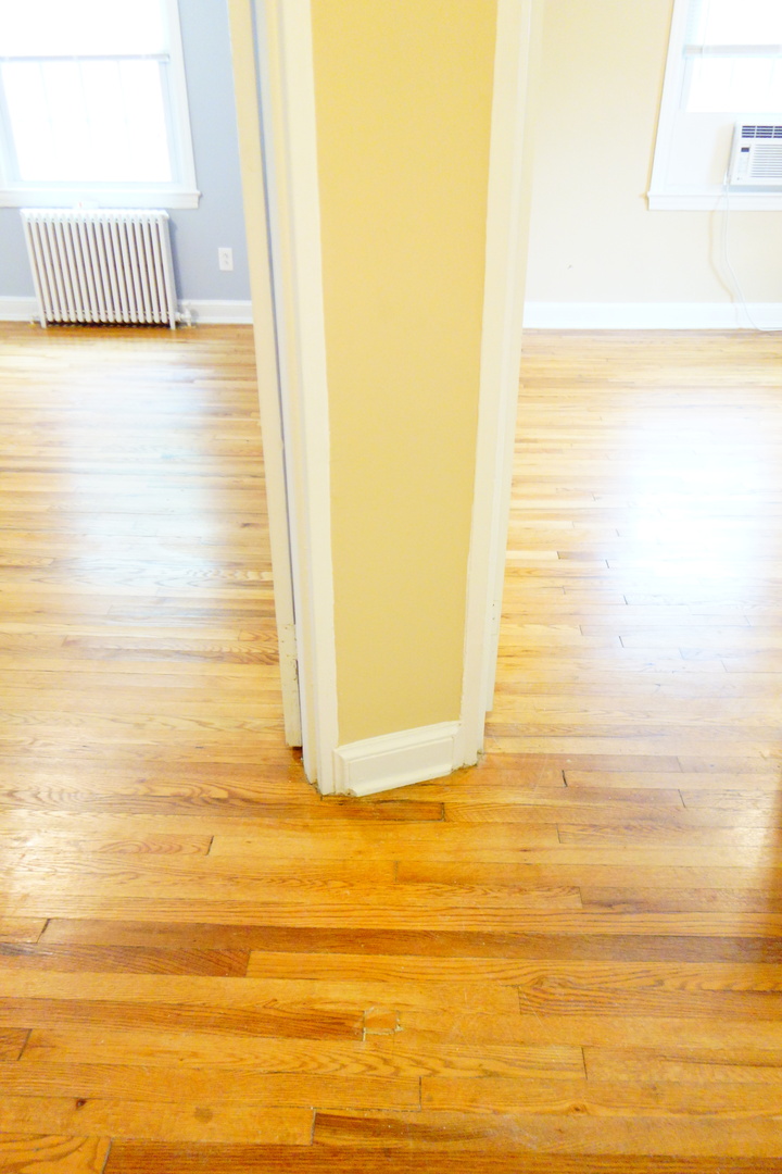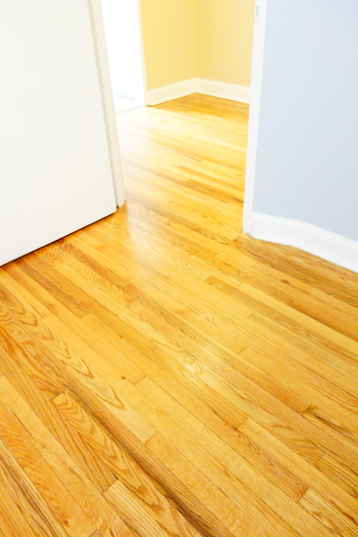 The apartment has beautiful hardwood floors.