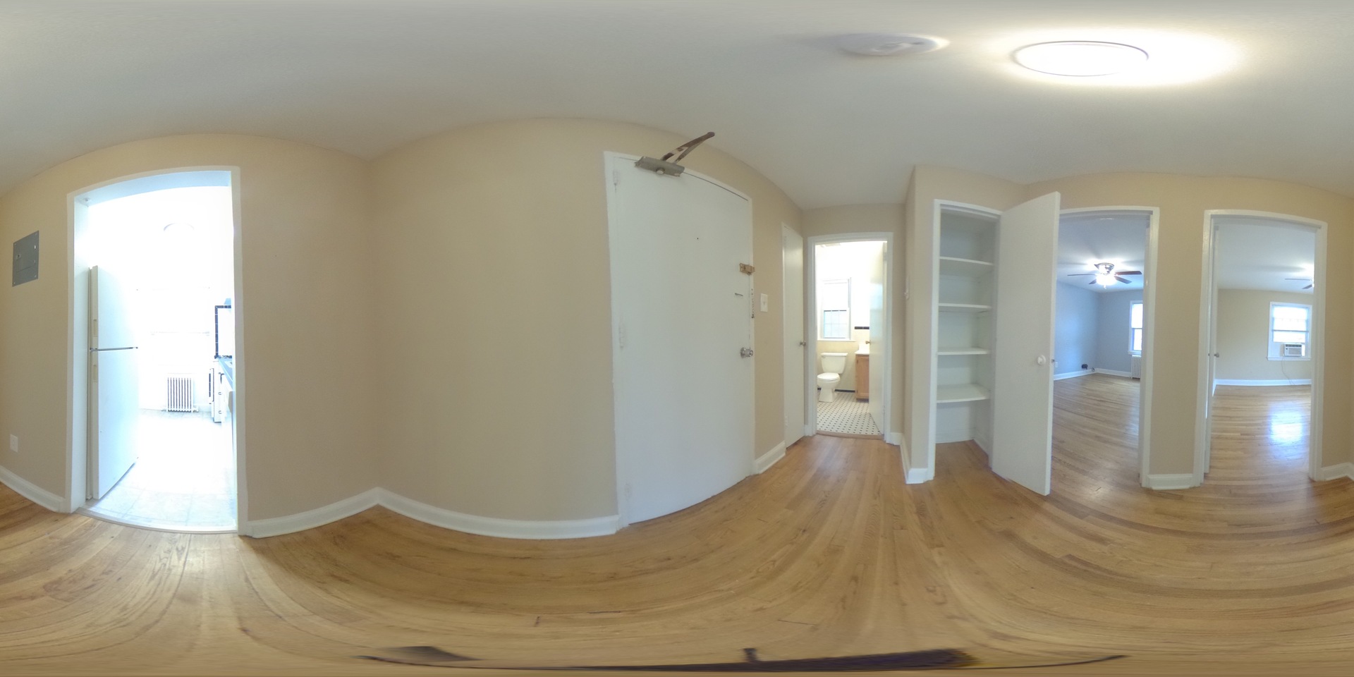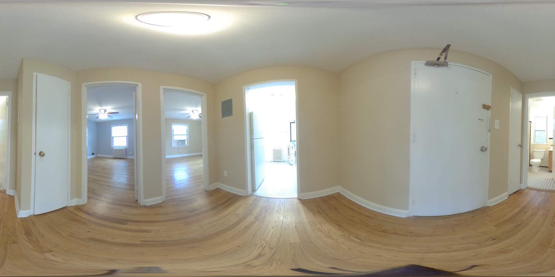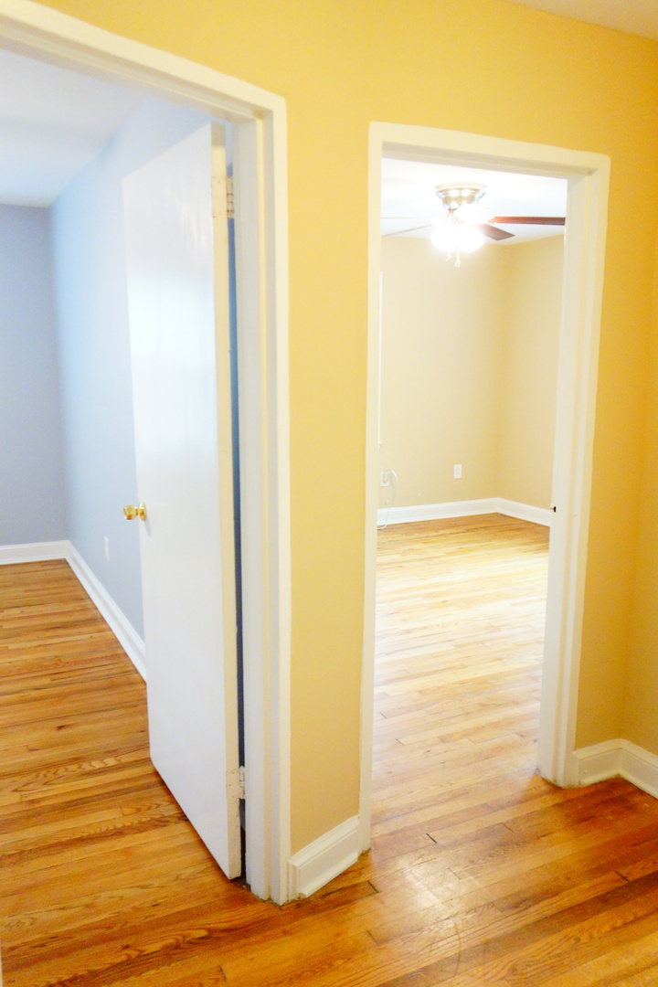 The apartment has beautiful hardwood floors.
