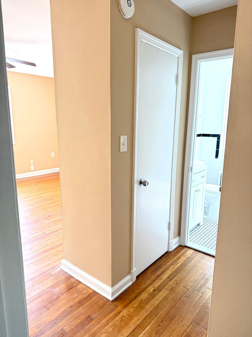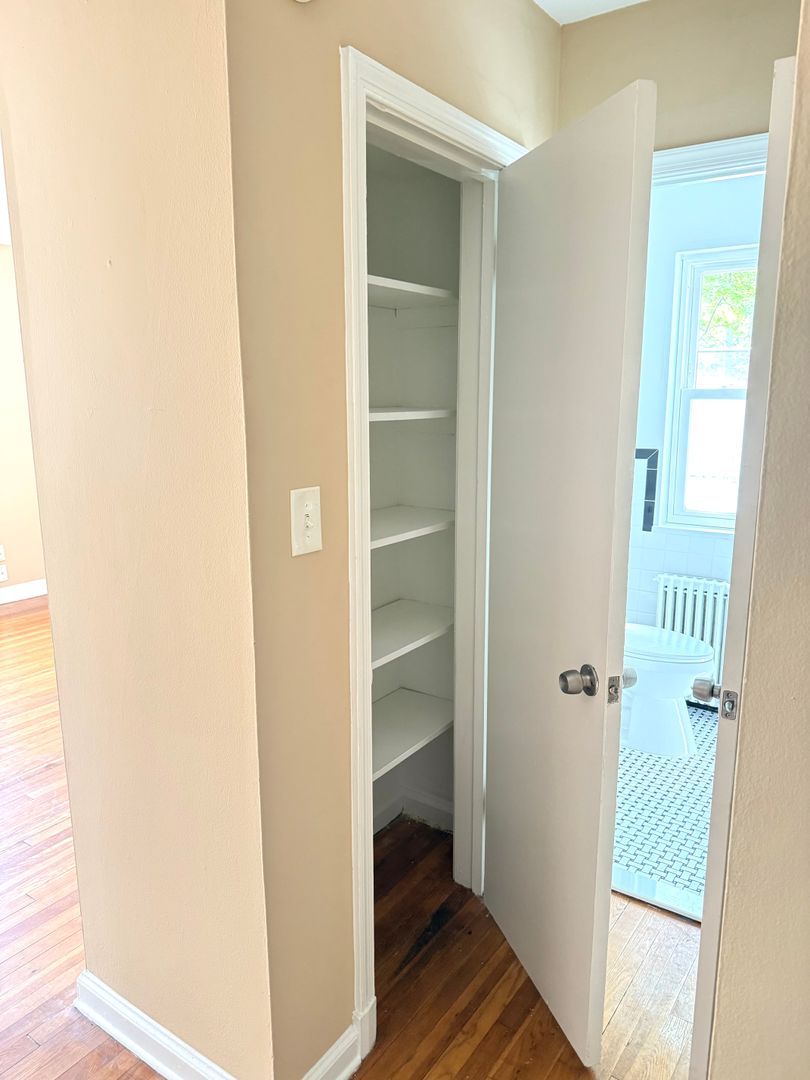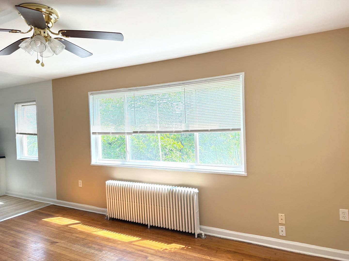 The apartment is newly renovated, has beautiful hardwood floors. There are huge new vinyl windows throughout the apartment which provide tons of natural of light. The apartment is very bright.