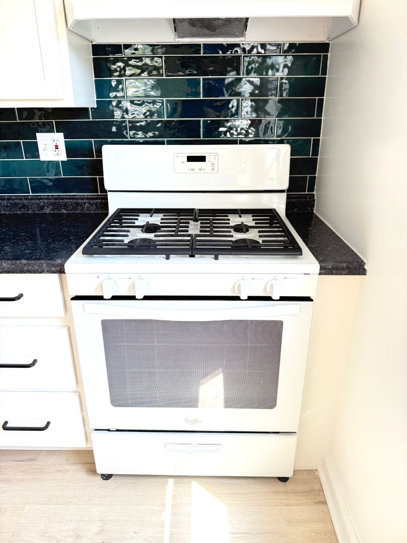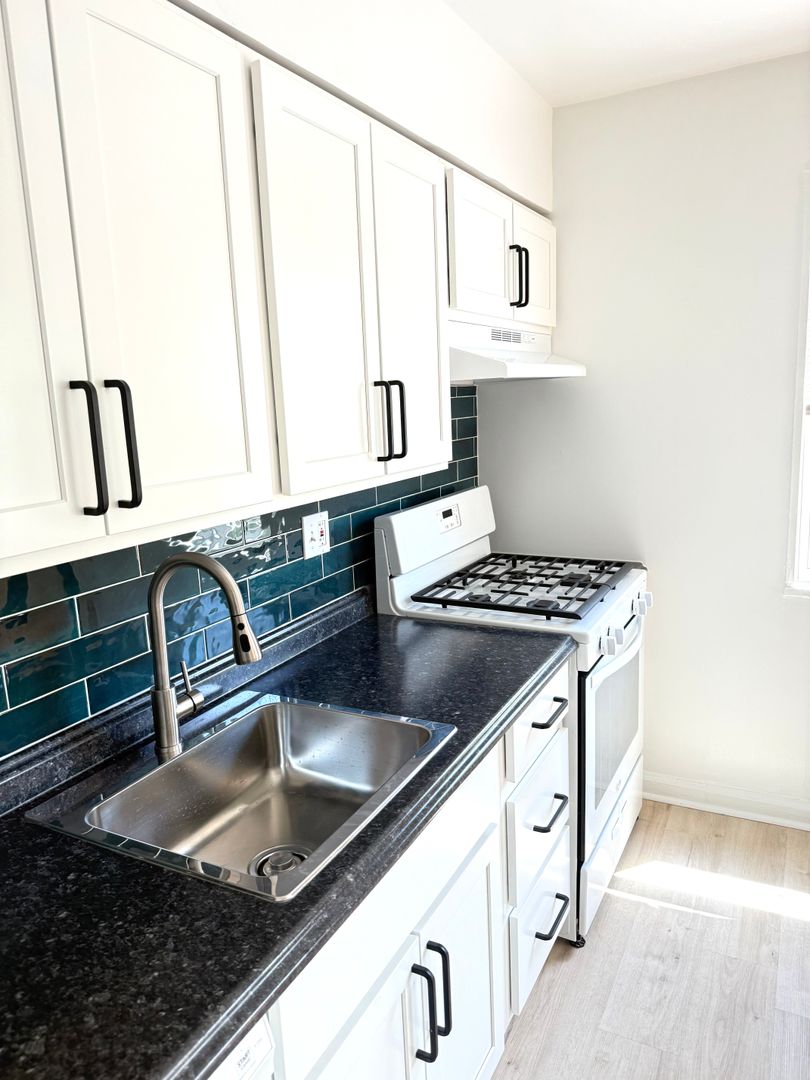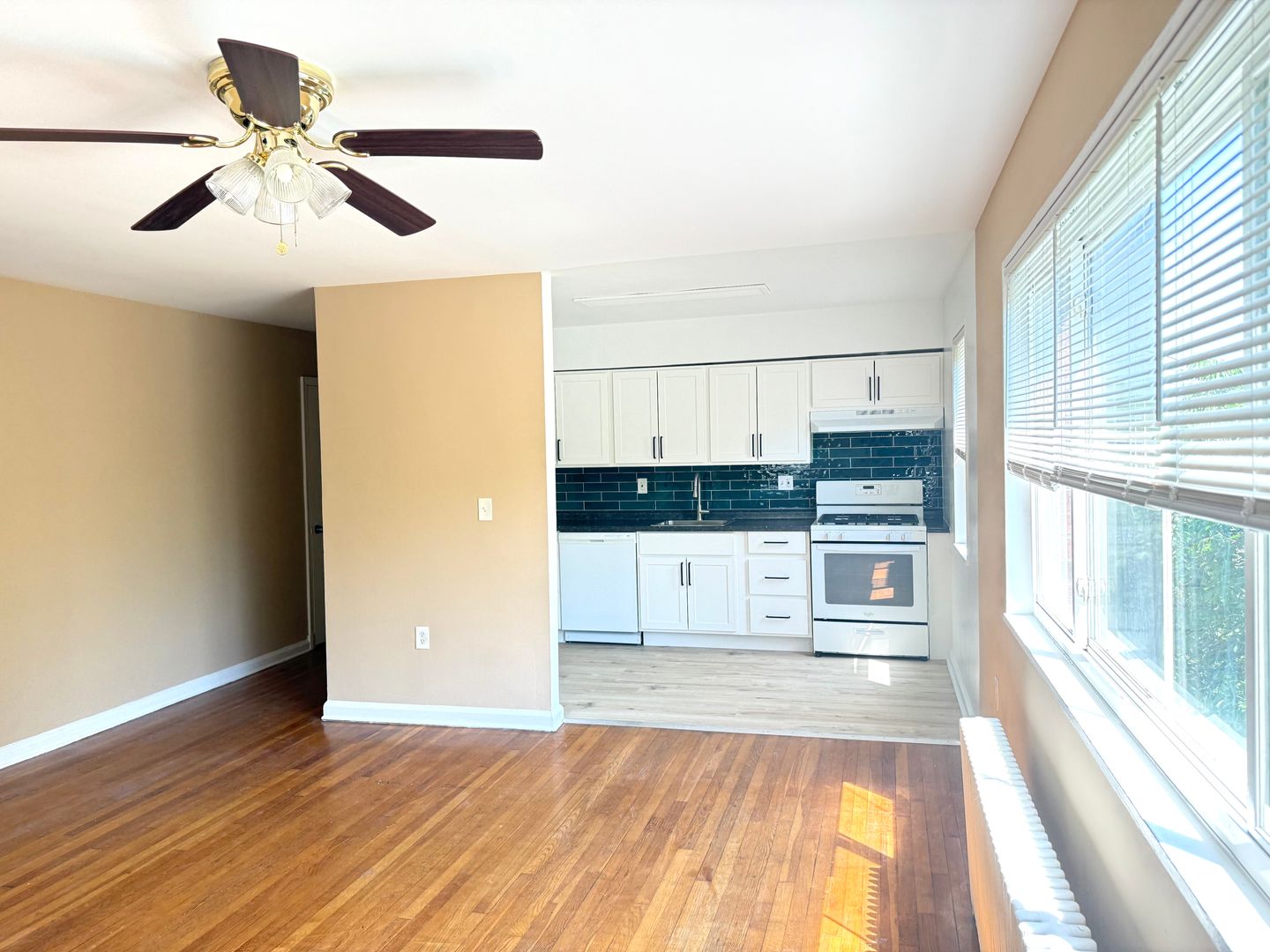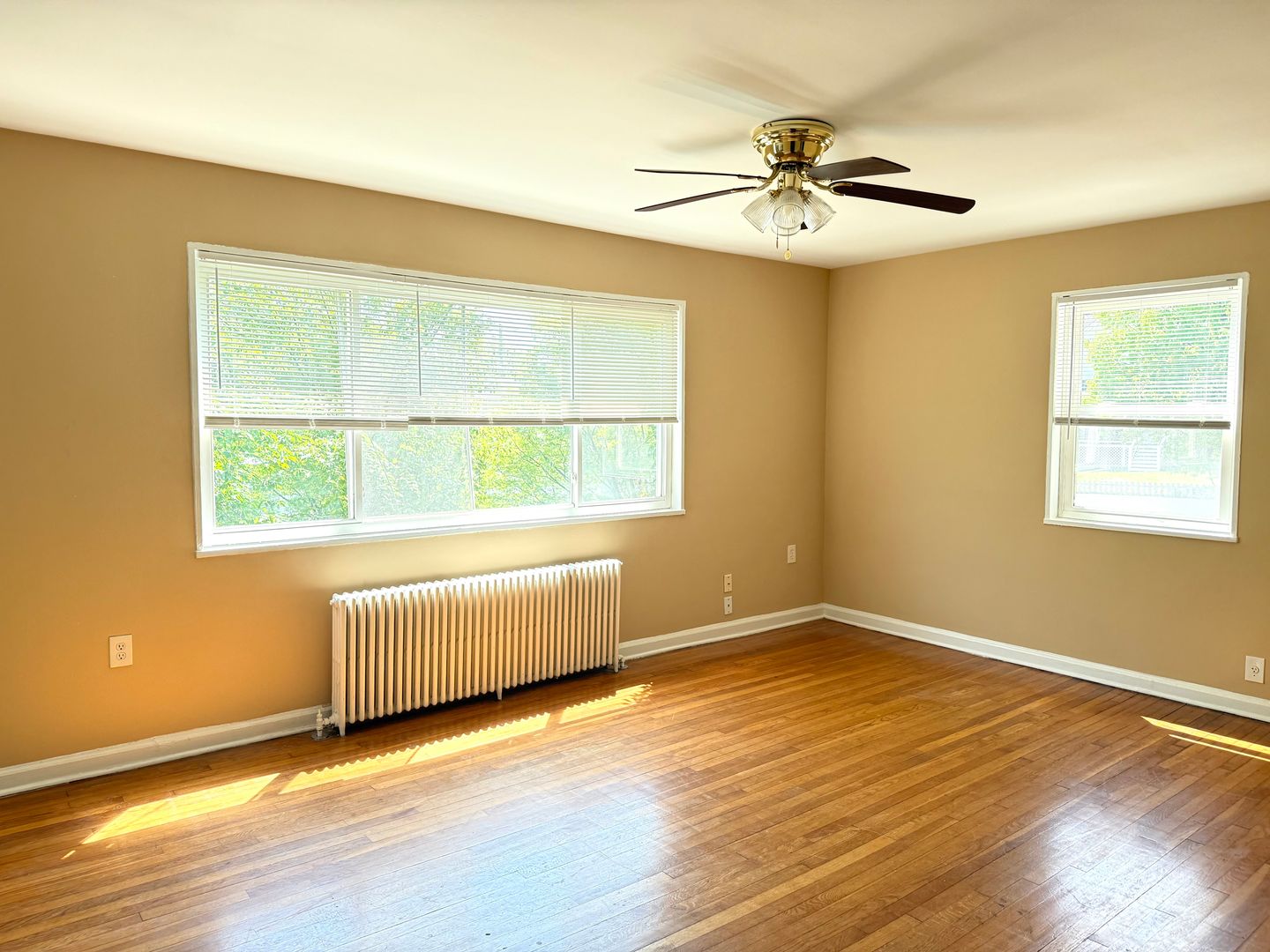 The apartment is newly renovated, has beautiful hardwood floors. There are huge new vinyl windows throughout the apartment which provide tons of natural of light. The apartment is very bright.