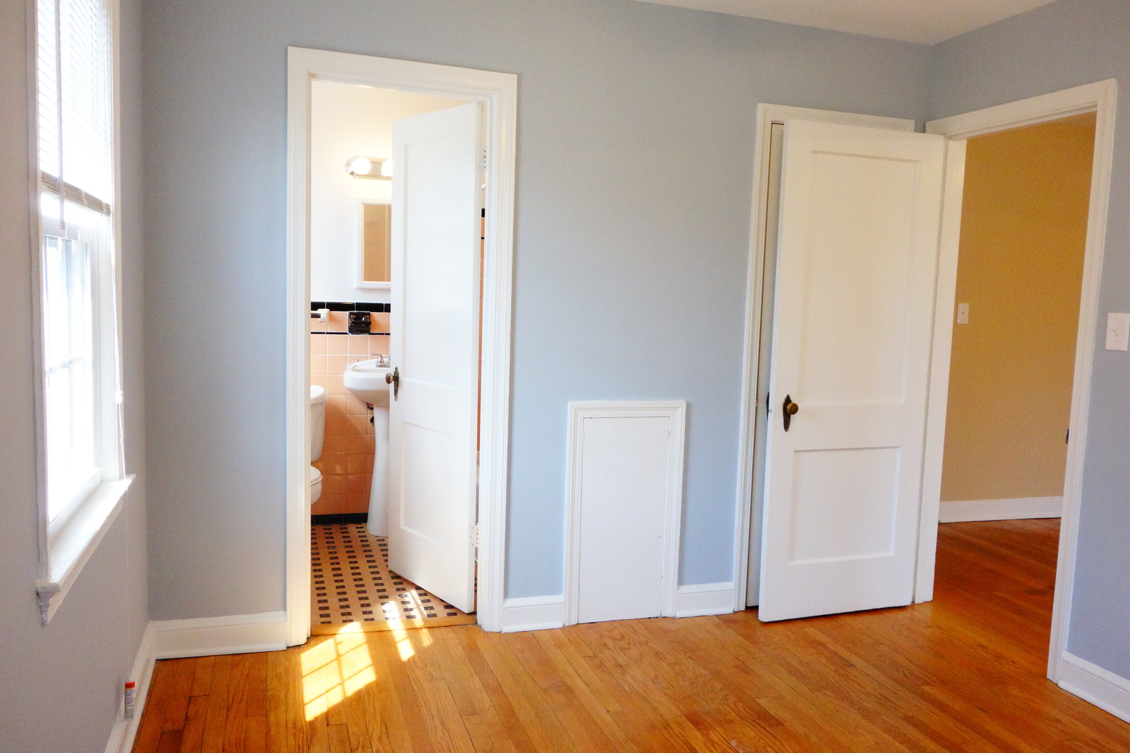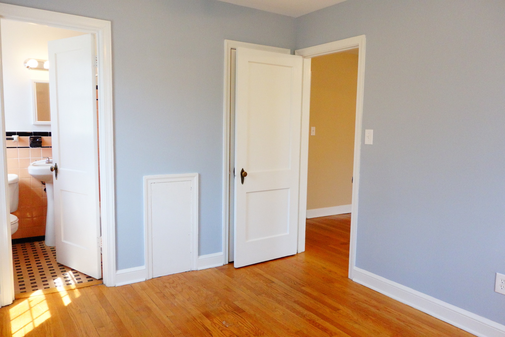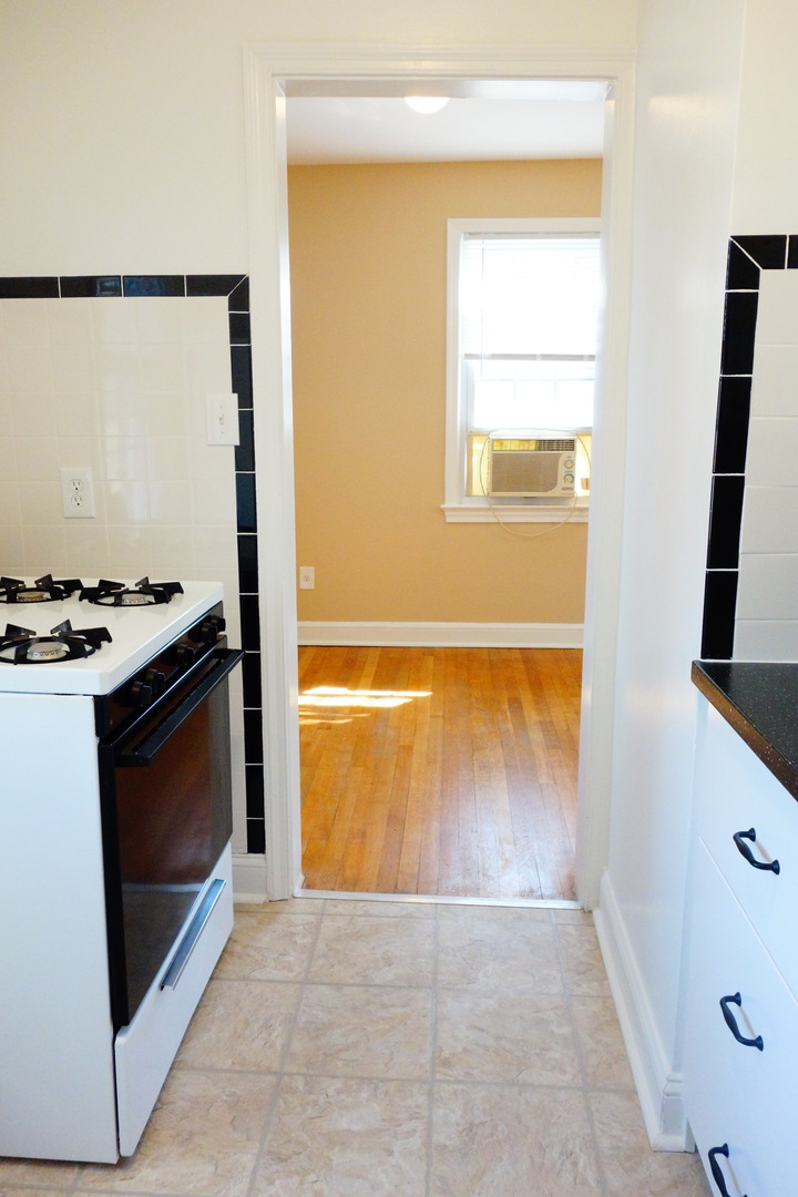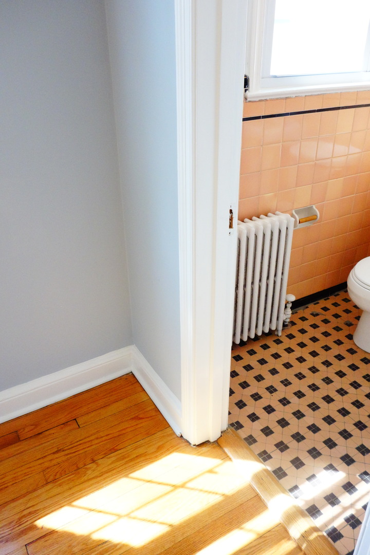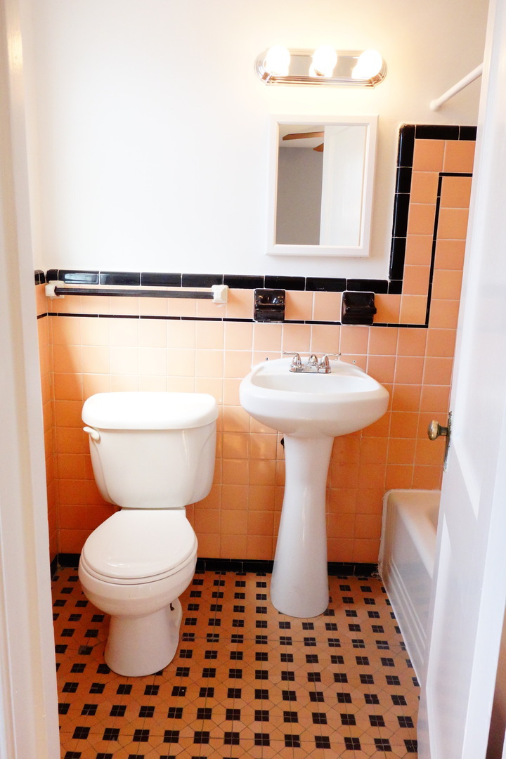 The apartment has beautiful, hardwood floors, original bathroom tile.